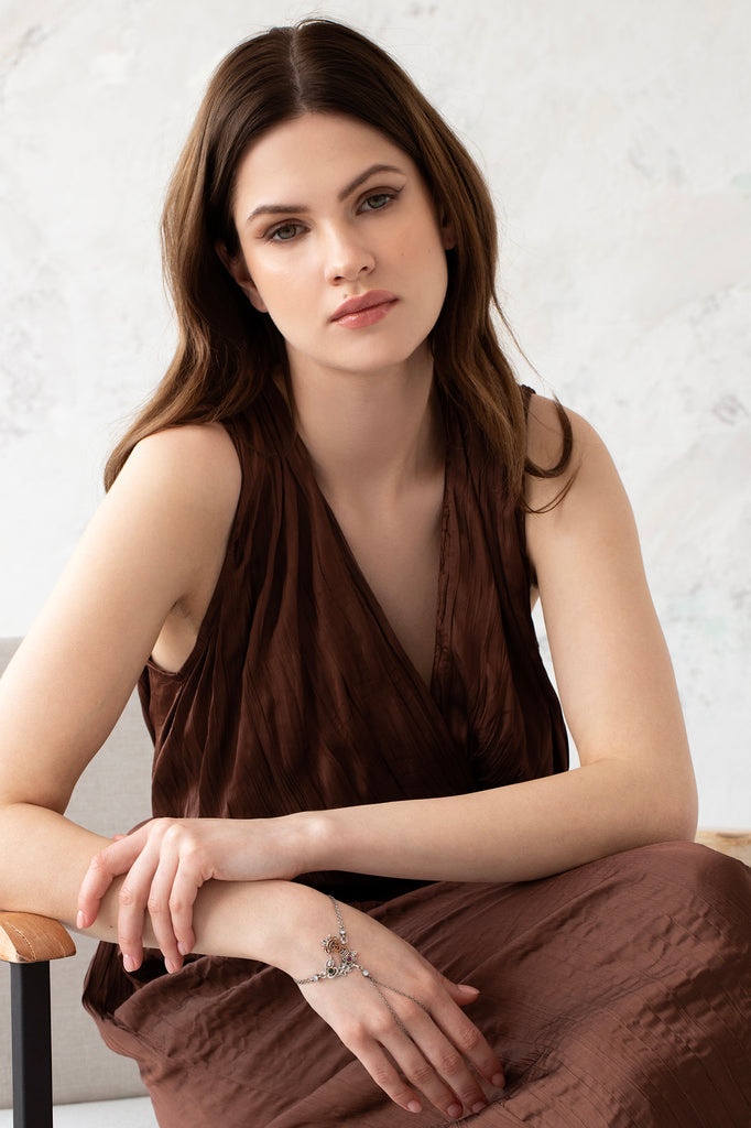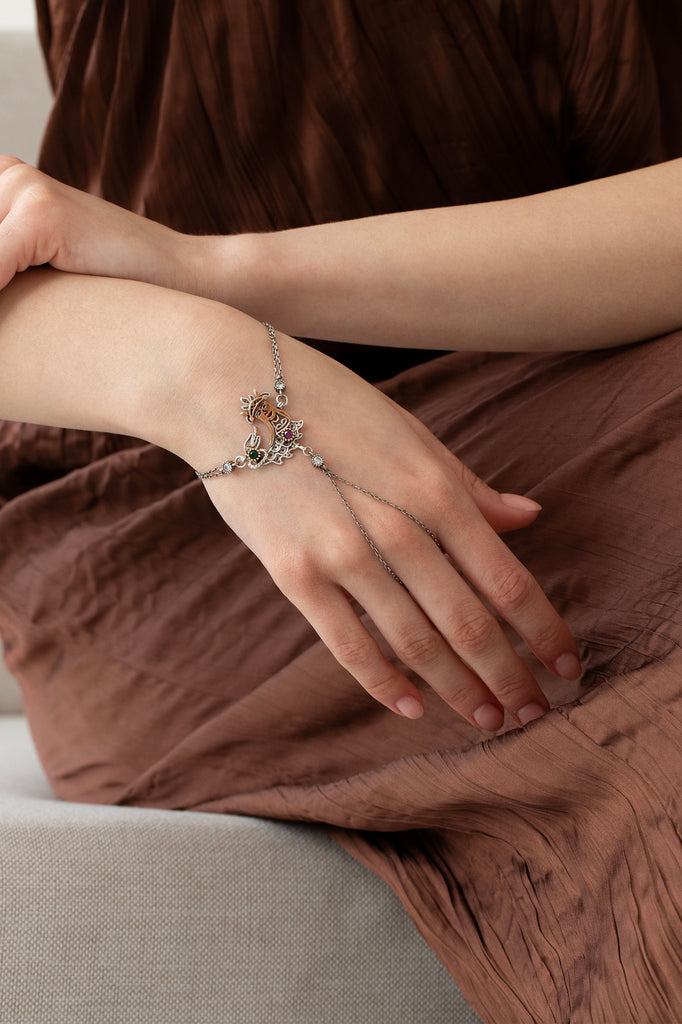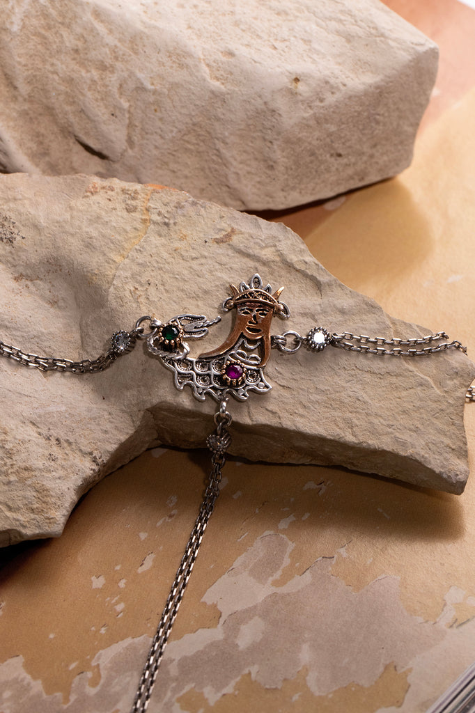 Shahmaran is a mythical creature, half-woman and half-snake, originating in Mesopotamian folklore. A figure used to ensure the safety of makind and protect them from evil, this ancient Turkish mythological legend has been passed down from generation to generation and has survived to the present day. Inspired by this well-known legend, this piece once again reveals our rich culture.